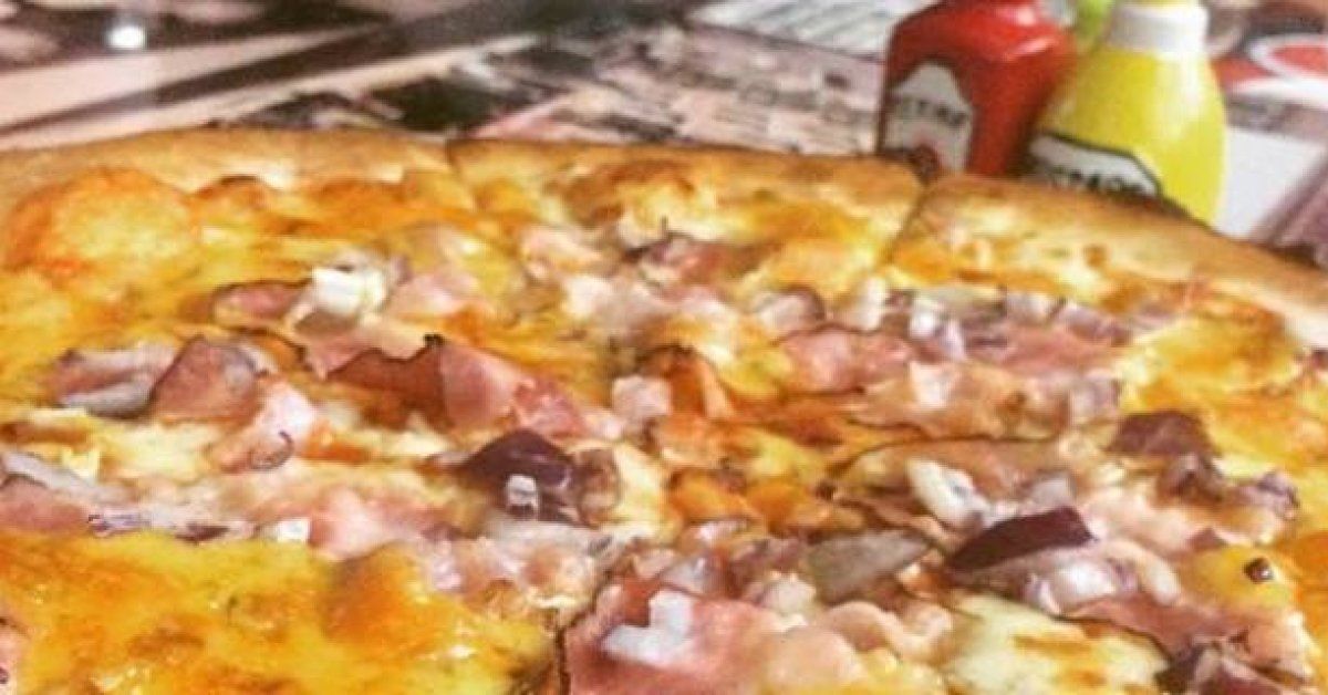 Špeciál na apríl: 700 g (smotana, mozzarella, parmezán, gorgonzola, talianska šunka a červená cibuľa) za 7,50 €.