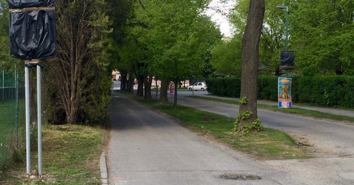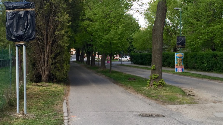 Dopravné značky sú ešte zakryté čiernym igelitom a môžete ich vidieť na Kláštorne, Školskej či Trhovej ulici.