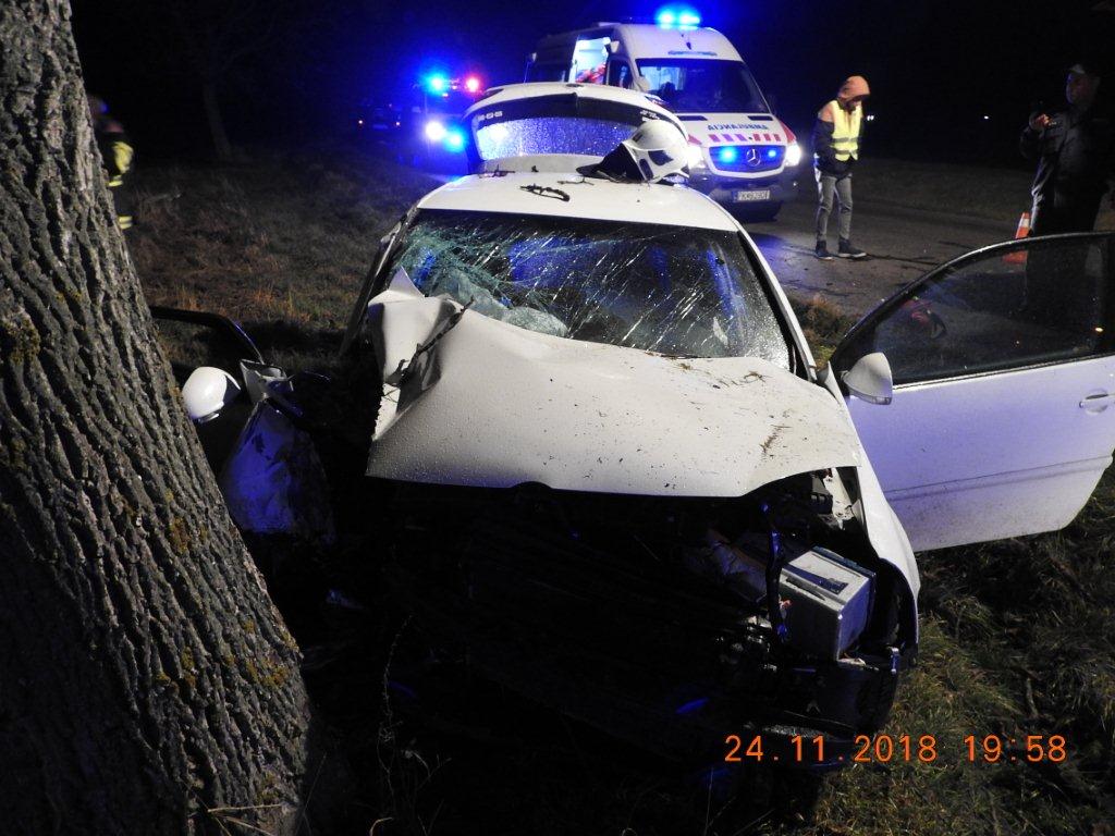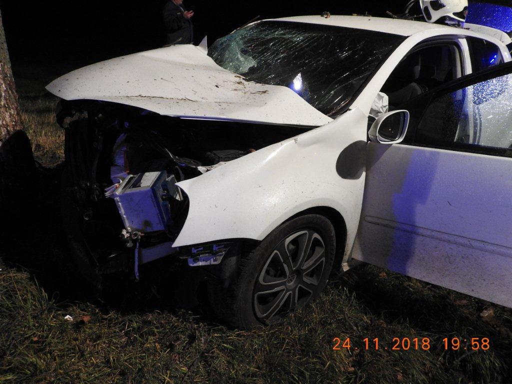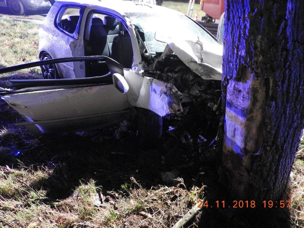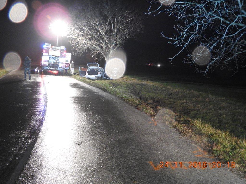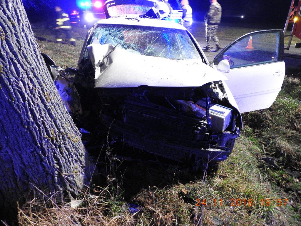 18-ročný vodič viedol VW Golf, pričom v ľavotočivej zákrute vyšiel z nezistených príčin mimo cestu, kde narazil do stromu. V aute sa okrem vodiča viezli ďalší štyria mladí ľudia (15, 15, 18, 20 r.), ktorí v dôsledku nárazu utrpeli ťažké zranenia. Vodič sa zranil ľahko, dychovou skúškou mu nebolo zistené požitie alkoholu. Presné príčiny a okolnosti dopravnej nehody polícia vyšetruje.
