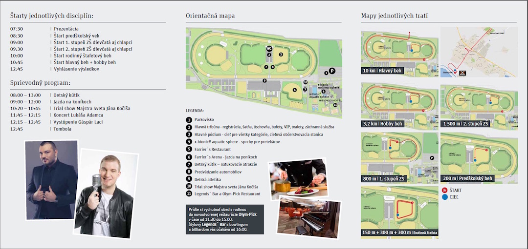Všetko sa to začína už skoro ráno, registrácia pretekárov sa spúšťa o 07.30 hod. a malí škôlkári vyštartujú už o 08.30 hod.