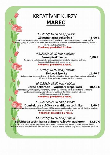 V Kreatívnom obchodíku u Moniky čaká na Vás aj v mesiaci marec bohatá ponuka kreaitívnych aktivít.
