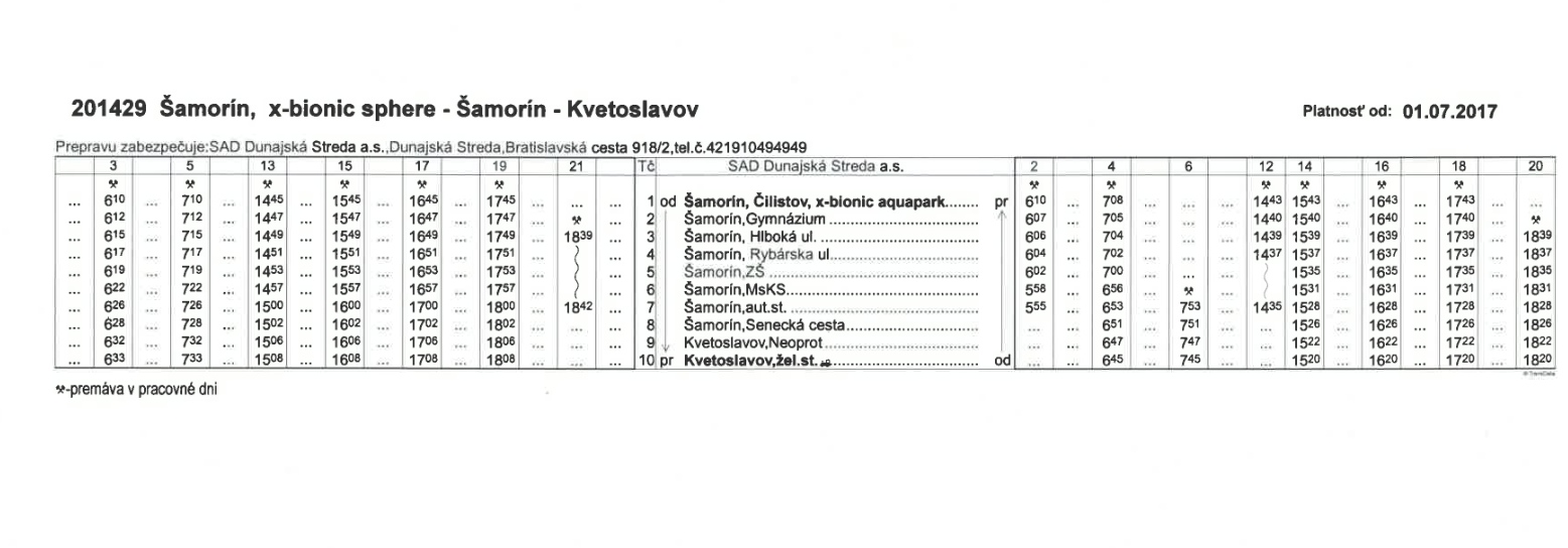Od 1. júla 2017 sa mení cestovný poriadok autobusovej linky x-bionic sphere – Kvetoslavov. Je to doprá správa, linka sa neruší a autobus bude premávať ďalej.
