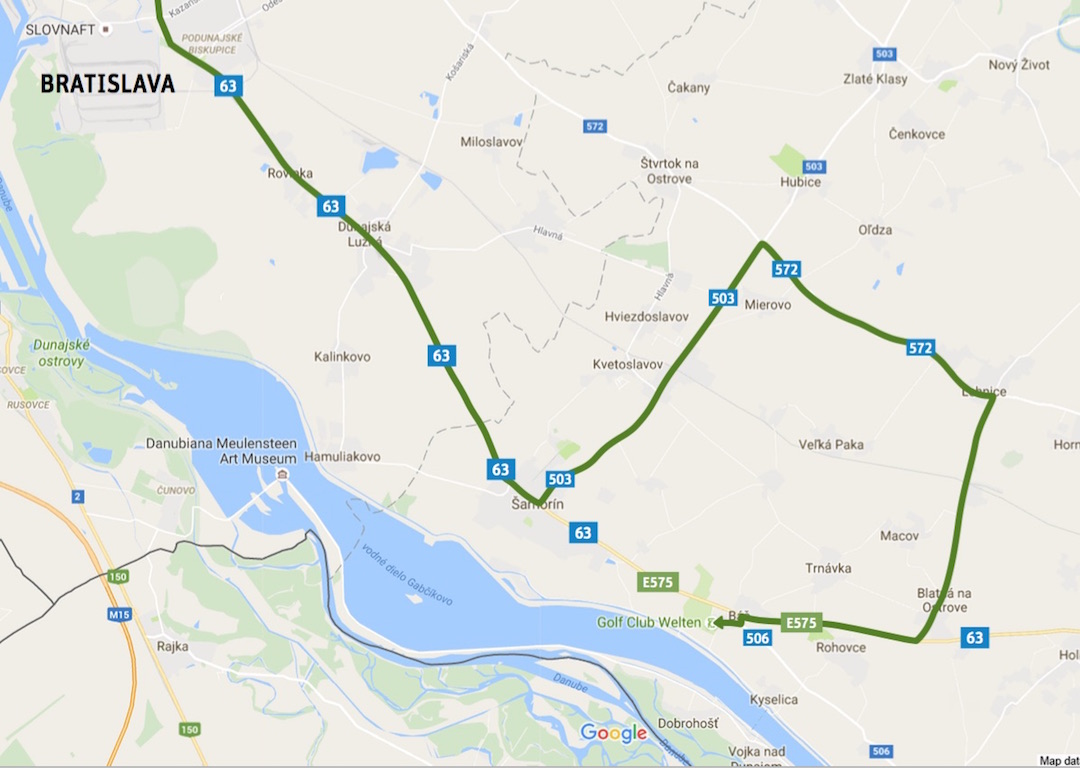 Počas uvedenej doby bude premávka odklonená obchádzkovou trasou z cesty č. I/63, ktorá bude vedená v okrese Dunajská Streda: Šamorín - kruhový objazd z cesty č. I/63 smerom na obec Kvetoslavov cesta č. II/503 - kruhový objazd na ceste č. II/572 medzi obcami Štvrtok na Ostrove a Lehnice, v Lehniciach smerom na obec Blatná na Ostrove cesta č. III/1382 späť̌ na cestu č. I/63 a opačne.