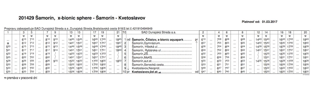 Od 1. marca 2017 sa mení cestovný poriadok autobusu, ktorý premáva medzi x-bionic sphere a vlakovou stanicou v Kvetoslavove. Autobus by mal lepšie nadväzovať na vlaky spoločnosti RegioJet.