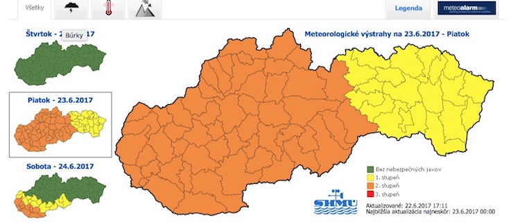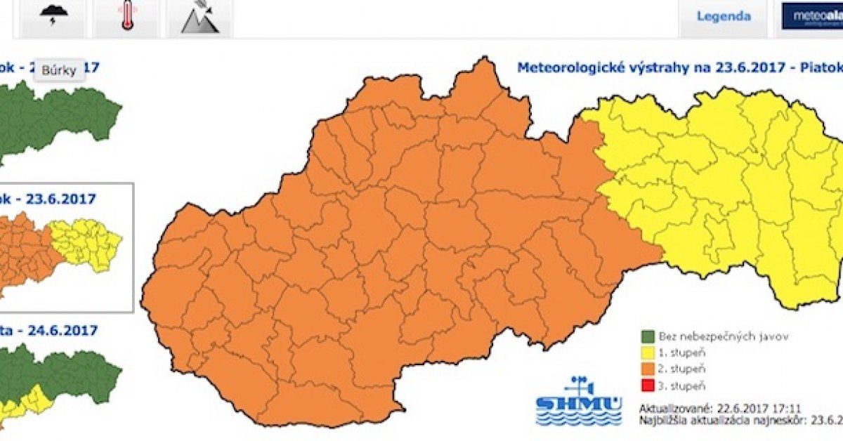 Slovenský hydrometeorologický ústav vydal na piatok výstrahu 2. stupňa pred silnými búrkami s krúpami, ktorá sa týka aj nášho regiónu. Výstraha platí od 4. do 9 hodiny.