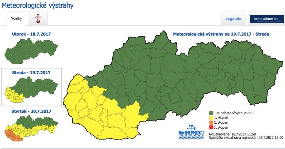 V tejto súvislosti Slovenský hydrometeorologický ústav vydal na stredu výstrahu prvého stupňa a na štvrtok až druhého.
