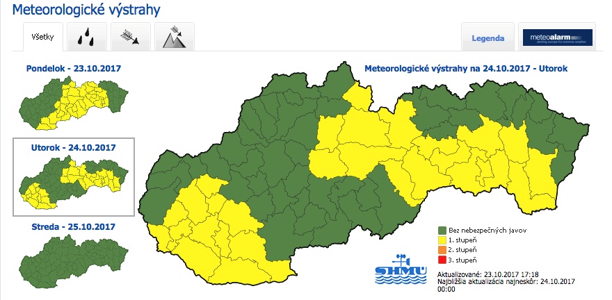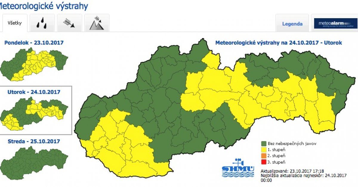 Ten vydal na utorok varovanie 1. stupňa. Platí od 9.00 do 17.00 hod.