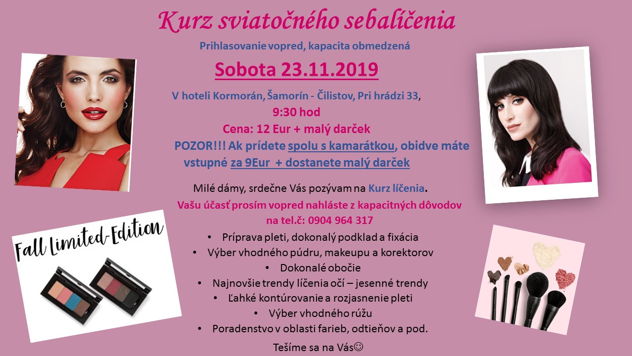 Získate vizážistické minimum pre rýchlu každodennú úpravu ale aj typy na líčenie na špeciálne udalosti alebo príležitosti.