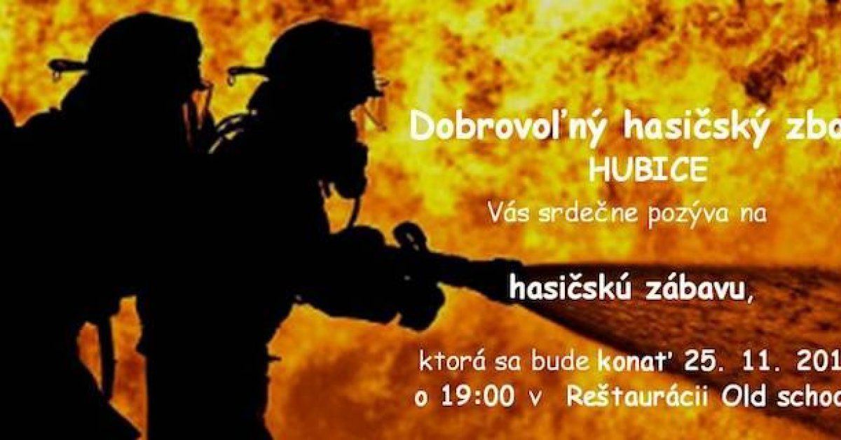 Dobrovoľný hasičský zbor Hubice Vás srdečne pozýva na hasičskú zábavu, ktorá sa bude konať v piatok 25. Novembra o 19.00 hod. v reštaurácii Old school.