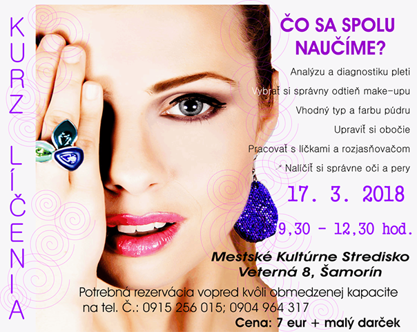 Kurz bude prebiehať 17. marca 2018 od 9.30 do 12.30 hod. v Miestnom kultúrnom stredisku v Šamoríne na Veternej 8.