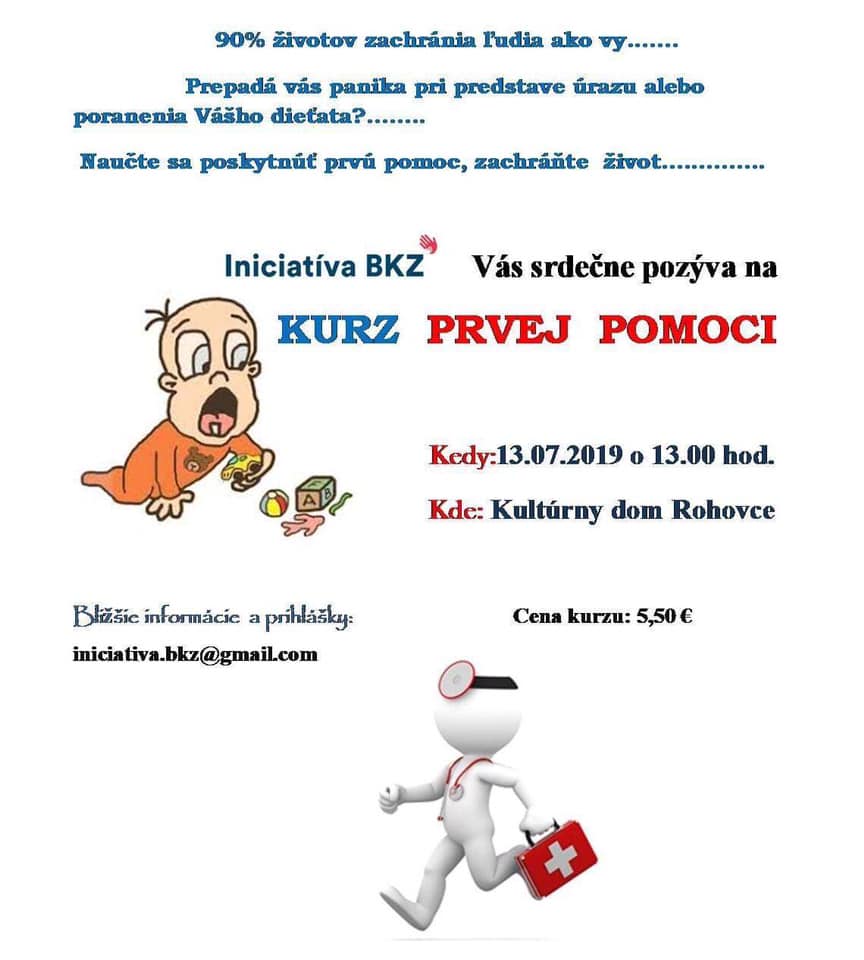 Kurz sa uskutoční 13. júla (sobota) o 13. hodine v Kultúrnom dome Rohovce. Cena kurzu je 5,50 €. Bližšie informácie získate na emailovej adrese iniciativa.bkz [at] gmail.com.