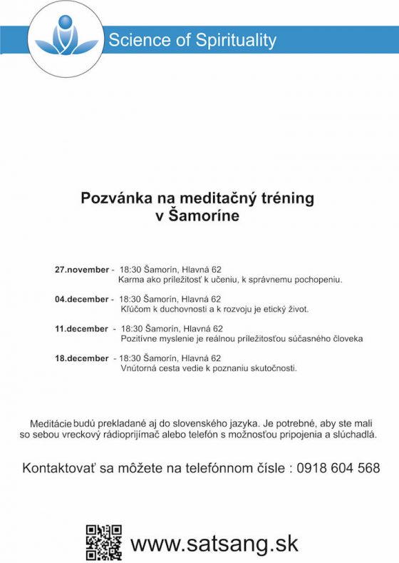 Pozvánka na meditačný tréning27.11.2017, 12:19OznamPozvánka na meditačný tréning v Šamoríne. Prvé stretnutie sa uskutoční už dnes.Zdieľať: