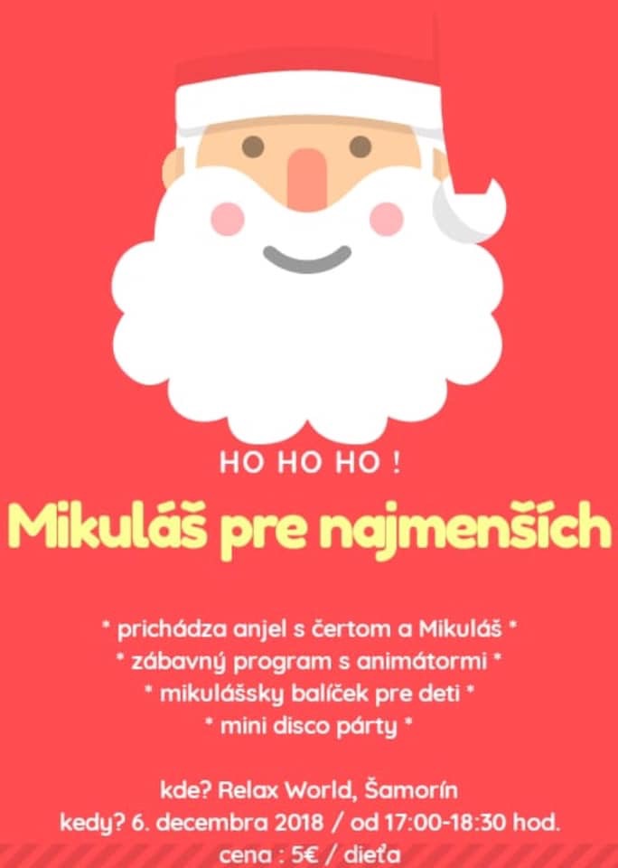 Srdečne Vás pozývame do detského centra Relax World na privítanie svätého Mikuláša a jeho pomocníkov.