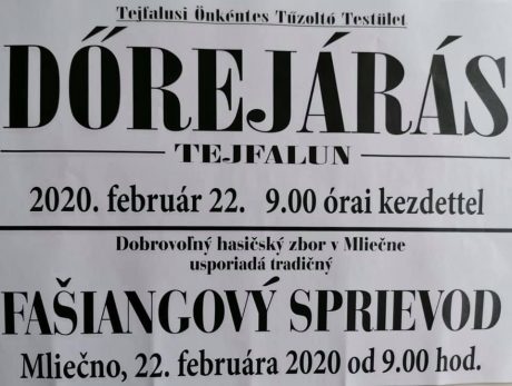 V sobotu 22. februára sa v Mliečne uskutoční tradičný fašiangový sprievod.