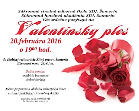Súkromná stredná odborná škola a hotelová akadémia SDJ Vás srdečne pozýva na náš tradičný Valentínsky ples.