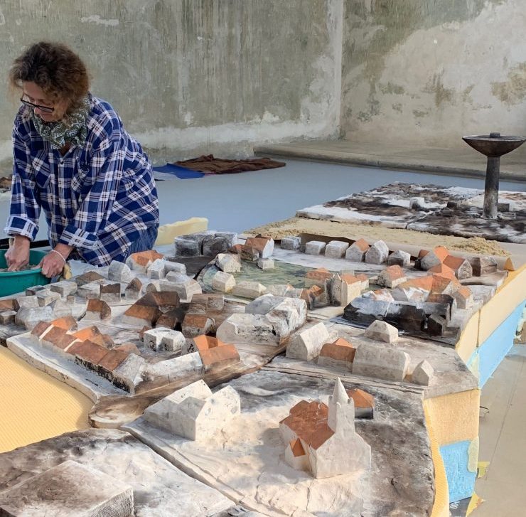 Eva najskôr dôkladne spoznávala dom za domom. Potom ich podobu vymodelovala zo špeciálnych hlín a vypálila v dymovej peci. Ďalšou úlohou bolo poskladať vypálené platne do konečnej podoby, ktorá bude odhalená zajtra o 17. hodine.