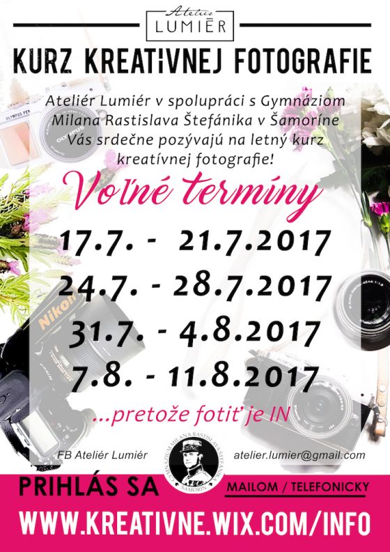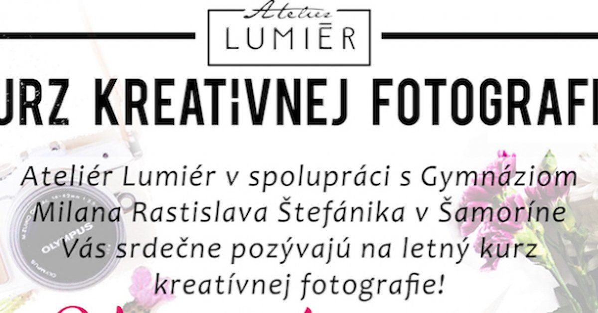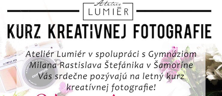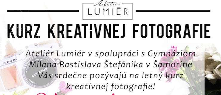 V spolupráci s Gymnáziom Milana Rastislava Štefánika a Ateliérom Lumiér si Vás dovoľujeme pozvať na letný ročník kreatívnych kurzov fotografie. ?