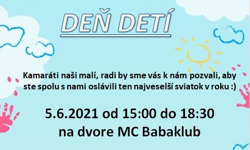 Tramtadadaaaaa, s veľkým nadšením si vás všetkých dovoľujeme pozvať na náš DEŇ DETÍ. Sviatok malých aj veľkých. Užijeme si kopec srandy, porozprávame sa, zacvičíme si a pomlsáme.