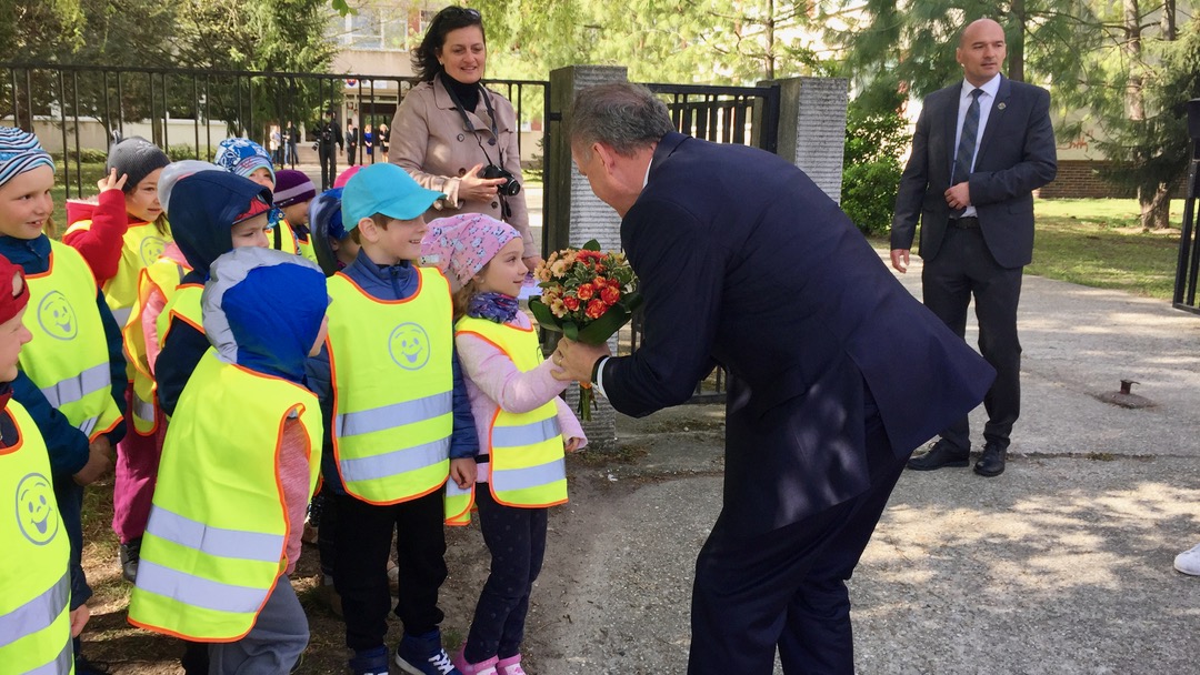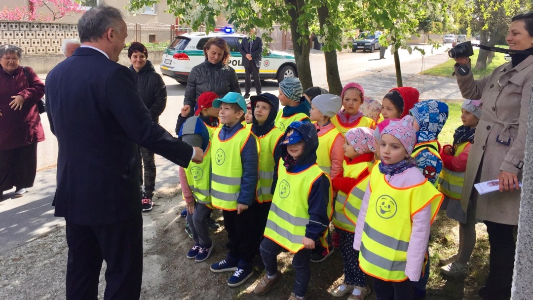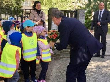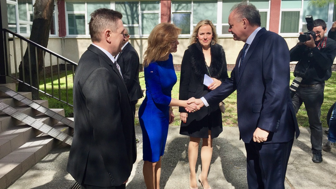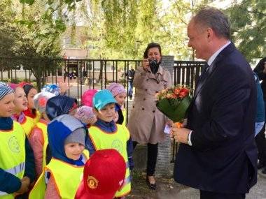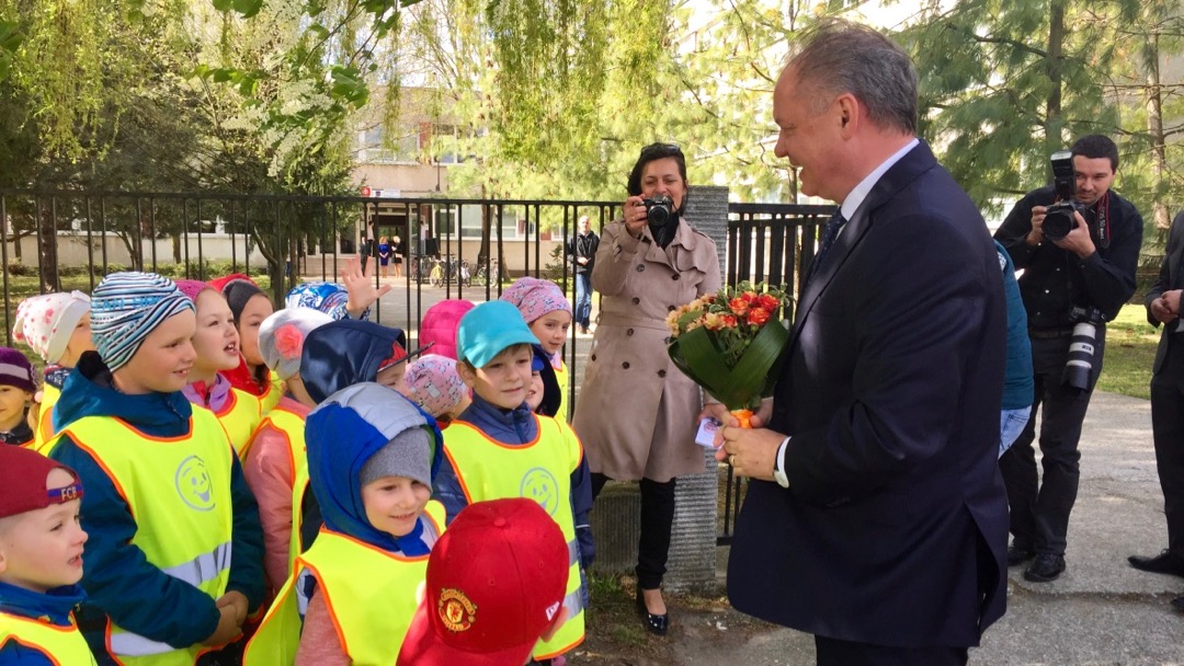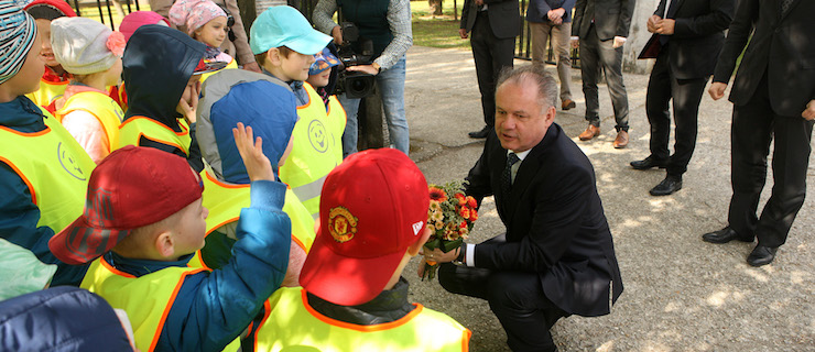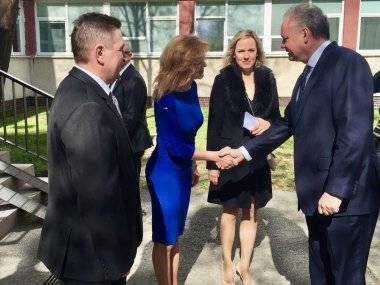 Darovali mu peknú kytičku a prezident sa so škôlkarmi chvíľku porozprával. Potom ho už oficiálne privítala riaditeľka slovenského gymnázia Edita Lysynová a riaditeľ gymnázia s vyučovacím jazykom maďarským Ján Trencsík.