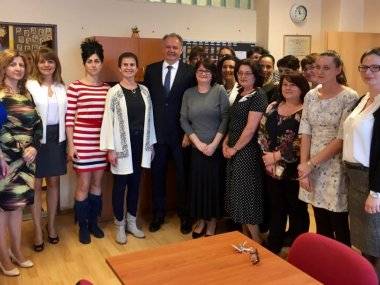 Potom navštívil zborovňu slovenského ako aj maďarského gymnázia. Vo svojich príhovoroch sa poďakoval učiteľom za ich náročnú prácu. Povedal, že je pre spoločnosť veľmi dôležitá a vyjadril presvedčenie, že raz bude aj príslušne ocenená.