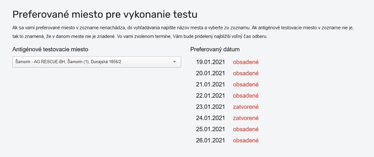 Pokiaľ sa však chcete objednať na bezplatný test na Dunajskej ulici, tak podľa rezervačného systému sú už všetky miesta do 26.1.2020 obsadené.