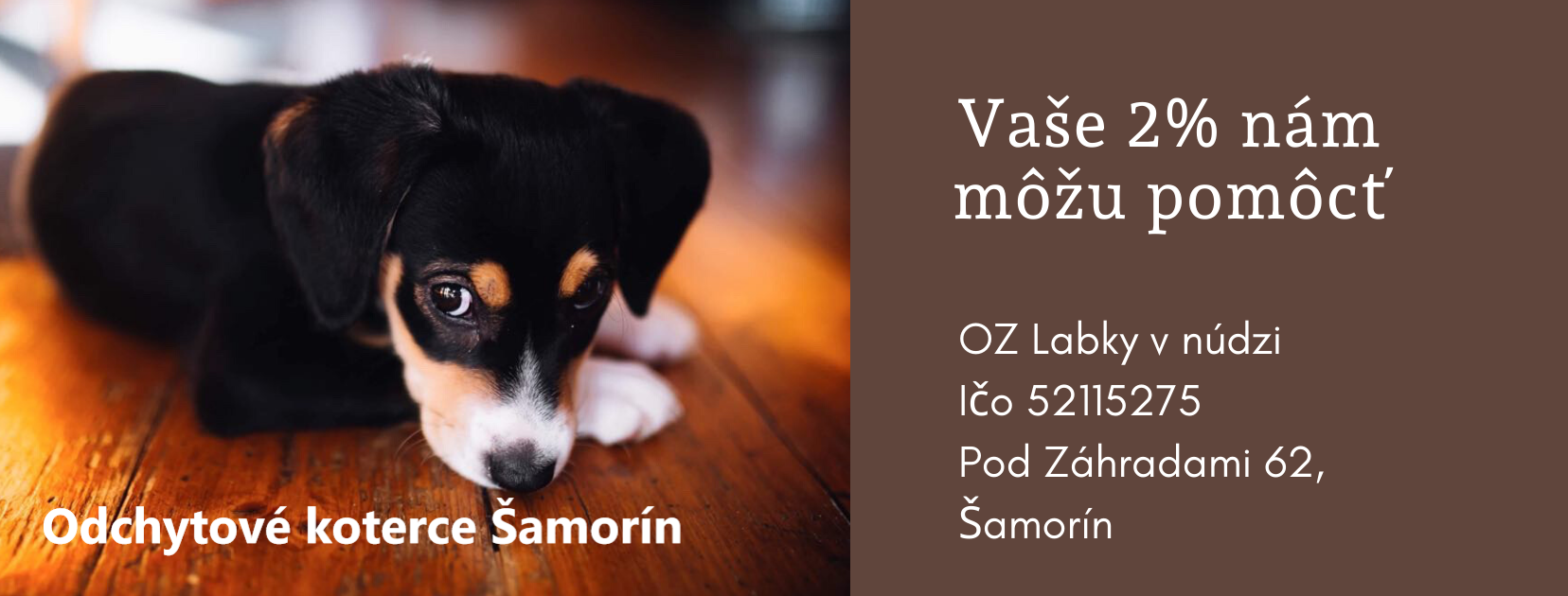 „A keďže sa blíži koniec roku a čitatelia sa budú môcť rozhodnúť komu darovať 2% z ich daní, budeme vďační keď sa rozhodnú darovať ich nášmu Občianskemu združeniu Labky v núdzi. V tomto roku sme vďaka 2% dokázali čiastočne opraviť koterce, zakúpiť nové búdy, platiť výcvik psíkom a v neposlednom rade platiť za kastrácie túlavých mačiek ( v tomto roku to bolo cez 120 kastrácii mačiek a kocúrov) a veterinárne ošetrenia všetkých chlpatých najdúchov,“ dodáva pracovníčka kotercov.