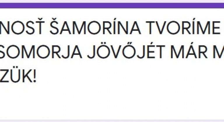 Kto pozná svoje mesto najlepšie ? Šamorín sme hlavne my, jeho obyvatelia. Žijeme tu, pracujeme a trávime svoj voľný čas. Každý z nás si budúcnosť Šamorína predstavuje trocha inak. Niekto chce viac zelene, iný lepšie služby, ďalší zasa viac možností pre trávenie voľného času.
