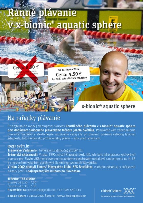 Pridajte sa do rannej tréningovej skupiny kondičného plávania v x-bionic aquatic sphere pod dohľadom skúseného plaveckého trénera Jozefa Světlíka.