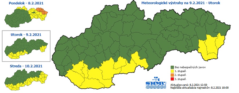 Ráno si dávajte pozor na poľadovicu8.2.2021, 17:00OznamSHMÚ vydal pre okres Dunajská Streda výstrahu pred poľadovicou v ranných hodinách. Výstraha je vydaná zatiaľ na utorok ( od 5:00 do 10:00) a stredu (od 8:00 do 23:00).Zdieľať: