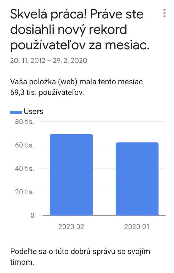Stále nás to prekvapí. Každý mesiac nový rekord v čítanosti. Stránka Šamorínčam rástla aj v mesiaci január. Kým kedysi našu stránku navštívilo za mesiac okolo 20 000 unikátnych návštevníkov, predchádzajúci mesiac to bolo takmer 70 000. Viac ako trojnásobný nárast a to vôbec netušíme, kde sa to môže skončiť. Kontinuálny nárast zaznamenávame od leta roku 2019 a ďakujeme vám za priazeň.