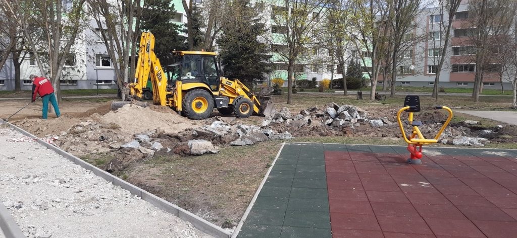 Na Dunajskej ulici aktuálne prebiehajú terénne úpravy a revitalizácia mestskej zelene. Pracovníci mestskej spoločnosti Area, s.r.o. tu vykopali značné množstvo betónu zakrytého len tenkou vrstvou zeminy.