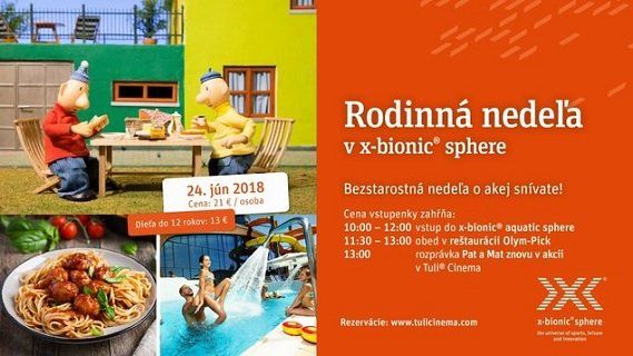Užite si spoločnú nedeľu naplno. Žiadne starosti, len zábava. My sa o všetko postaráme, vy budete spolu tráviť aktívne čas. Na jednom mieste ponúkame bazénovú zábavu, obed pre malých aj veľkých a film, pri ktorom sa nebudú nudiť ani rodičia.