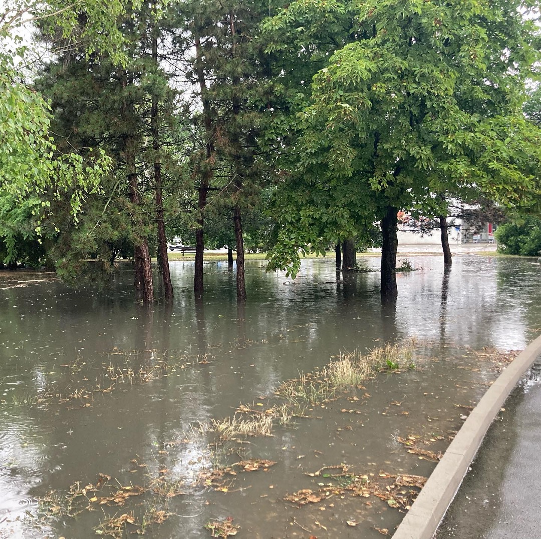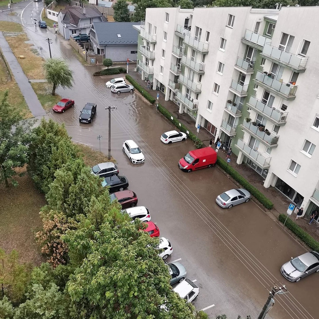 Včera podvečer sa našim mestom prehnala búrka sprevádzaná výdatným lejakom a silným vetrom. Spadlo toľko vody, že v podvečer bol v meste vyhlásený 3. stupeň povodňovej aktivity, ktorý ostáva v platnosti až do odvolania.