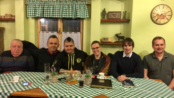 Prvé zasadnutie redakčnej rady: p. József Szilvássy (vľavo), Jozef Bednár, Robert "Jury" Jurányi - redaktor somorjai.sk, Marie Stracenska, Bálint Lovász a Vlado Gábor (vydavateľ) .