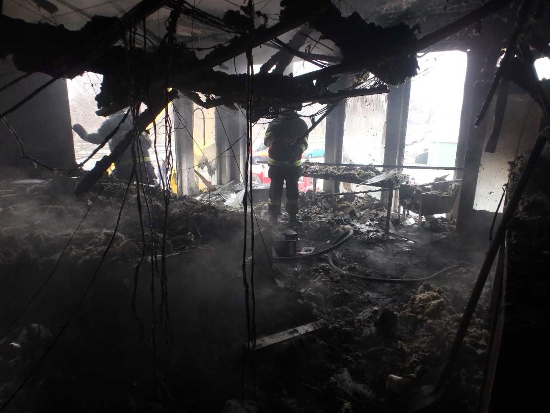 Likvidácia požiaru prebiehala za postupného vynášania skladového materiálu a rozoberania konštrukcií. Hasiči pri týchto prácach využili výškovú techniku.
