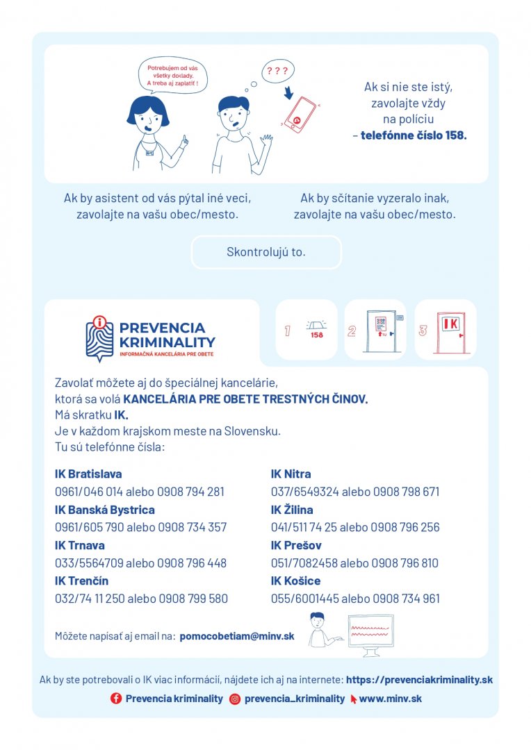 Ak nie ste si istý, či bol počas elektronického sčítania Váš hárok systémom zaznamenaný, radšej sa dajte sčítať ešte raz počas asistovaného sčítania. Systém automaticky vymaže prípadné duplikáty s rovnakými údajmi.