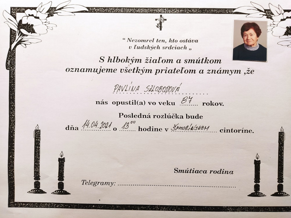 SČK Šamorín sa lúči s dlhoročnou členkou13.4.2021, 13:23SČK ŠamorínDňa 10.04.2021 vo veku nedožitých 88 rokov nás navždy opustila dlhoročná členka SČK Šamorín Pavlína Szlobodová.Všetci členovia miestnej organizácie vyjadrujú úprimnú sústrasť smútiacej rodine.Zdieľať: