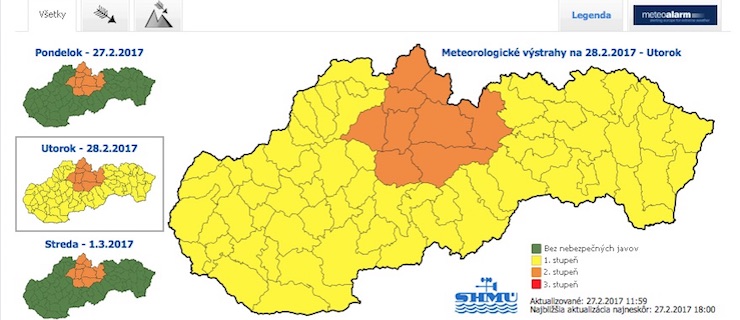 Výstrahy platia pre okres Dunajská Streda ako aj celé Slovensko.