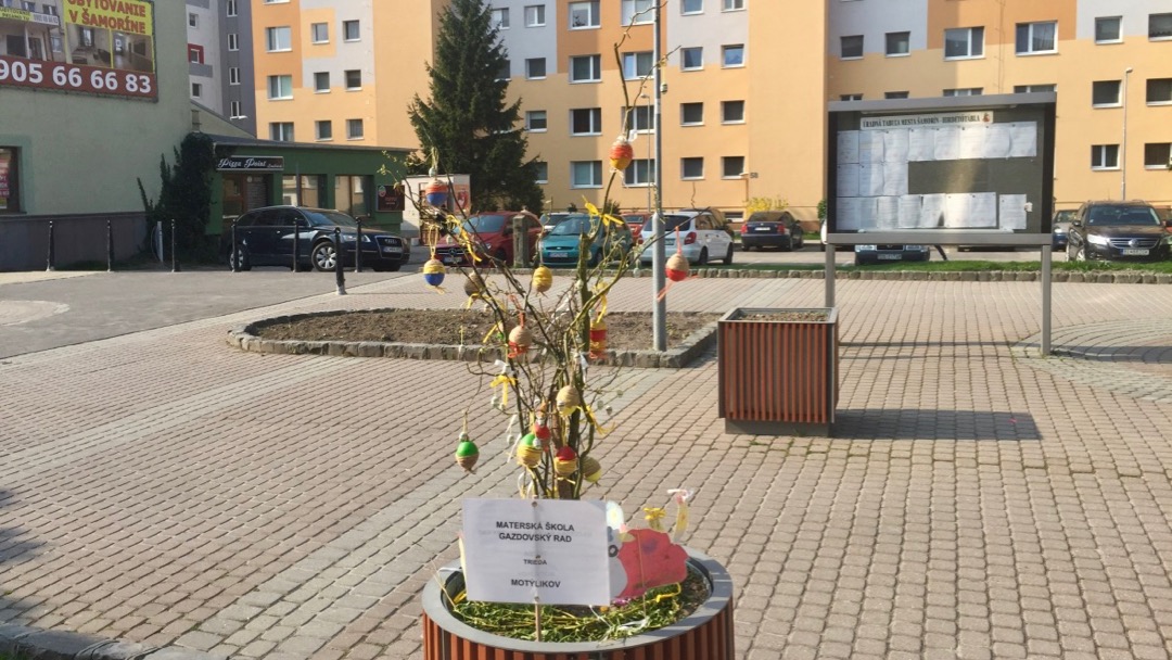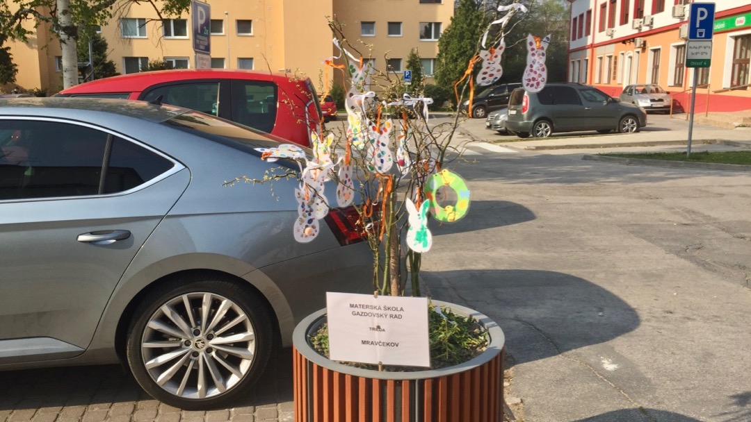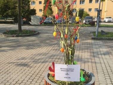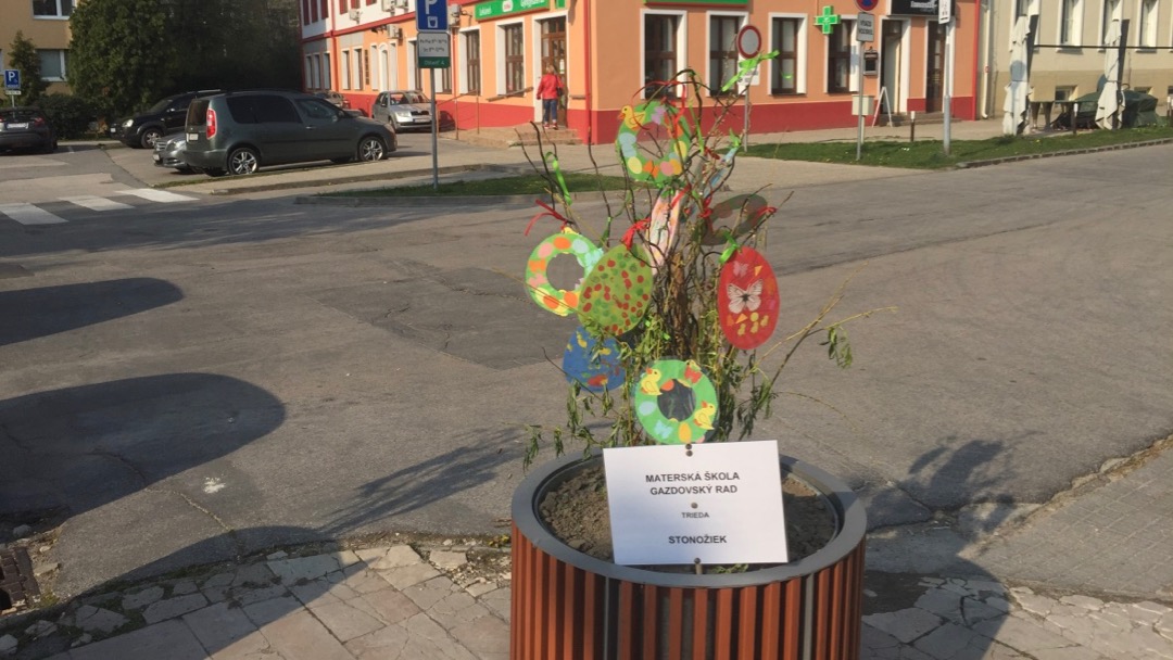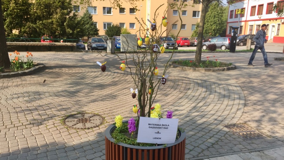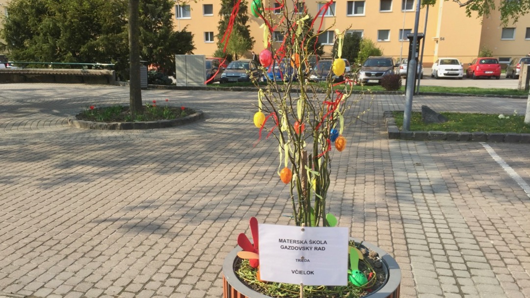 Pripravili ju deti s pani učiteľkami z Materskej školy na Gazdovskom rade. ,,Podnik Area nám umožnil využiť kvetináče, ktoré čakajú na výsadbu letničiek a tak sme ich ozdobili,” povedala Zuzana Minarechová, riaditeľka materskej škôlky.