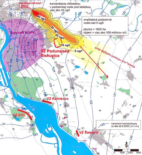 Podľa informácií uvedená kontaminácia postupuje do Žitného ostrova nepretžite v závislosti od prietoku Dunaja rýchlosťou okolo 1 m za deň a kontaminuje, teda znehodnotí cca 5 až 10 tis. litrov vody za sekundu.