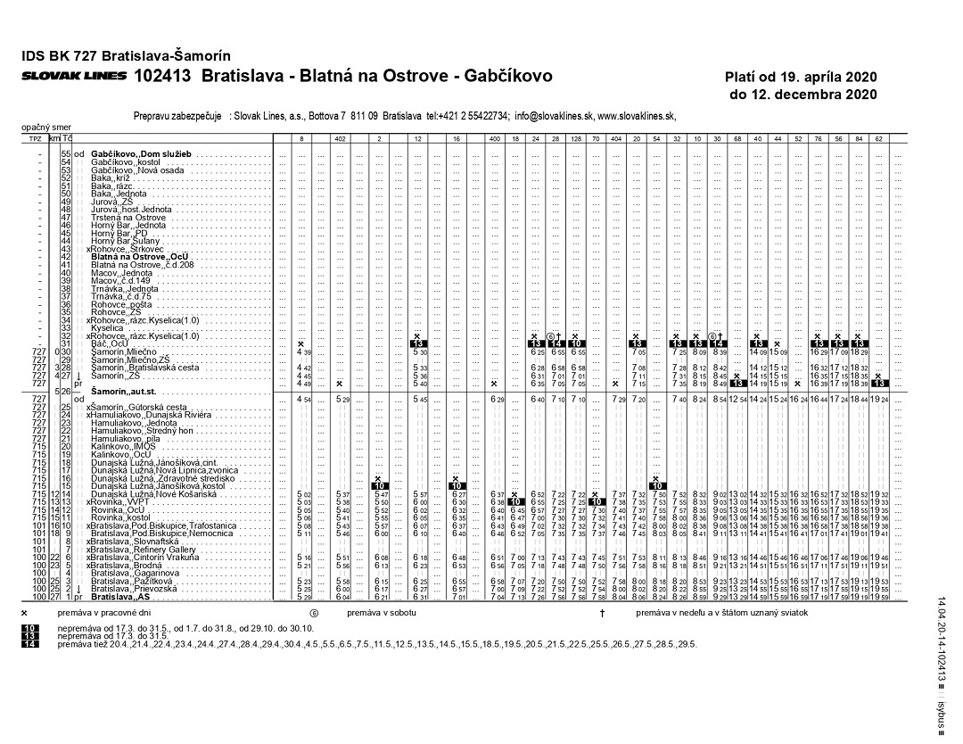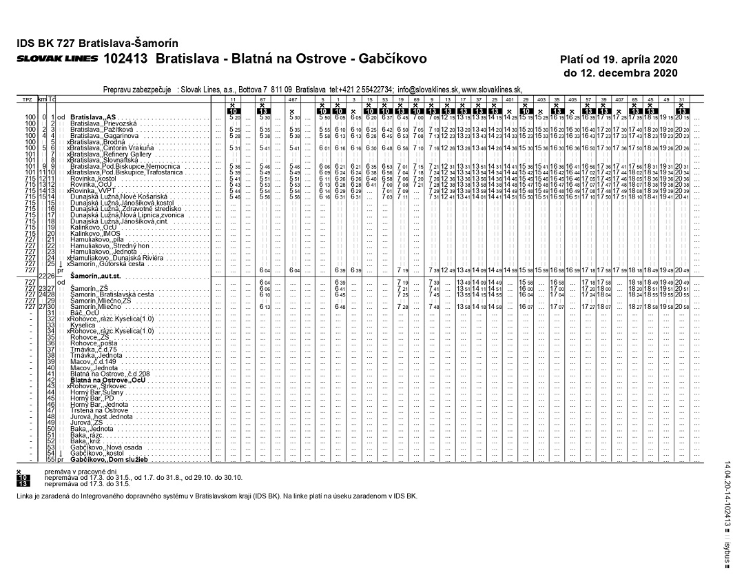 Cestovný poriadok Slovak Lines, a.s. v platnosti od 19.4.2020 - linky cez Šamorín.(v galérii po kliknutí na čítaj ďalej)