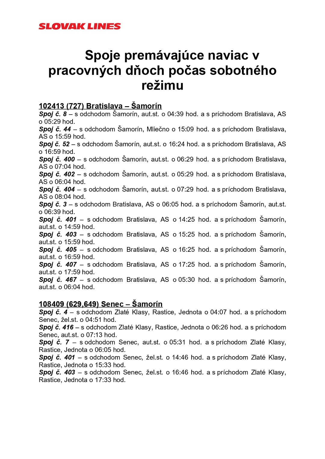 Okrem týchto spojov nad rámec sobotného režimu sú doplnené aj ďalšie spoje vybraných liniek. (v galérii pod článkom)