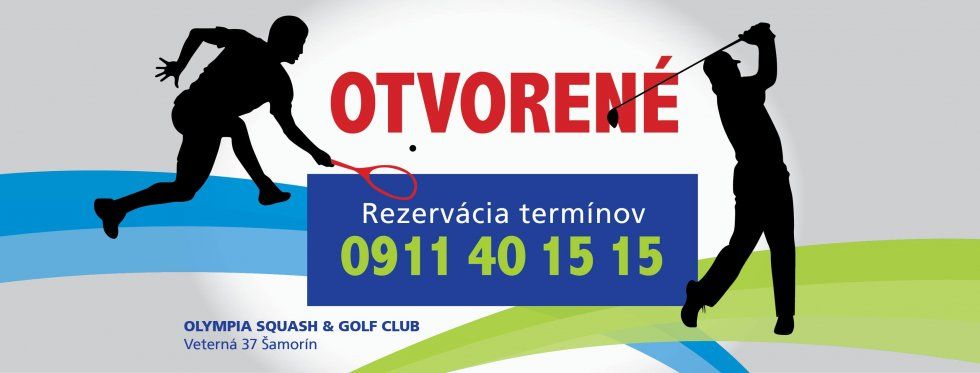 Otvorené na telefonickú rezerváciu: 0911 40 15 15. Volajte hodinu vopred denne od 9. do 21. hodiny. Ďalšie informácie nájdete aj na facebookovej stránke Olympia Squash & Golf Club.