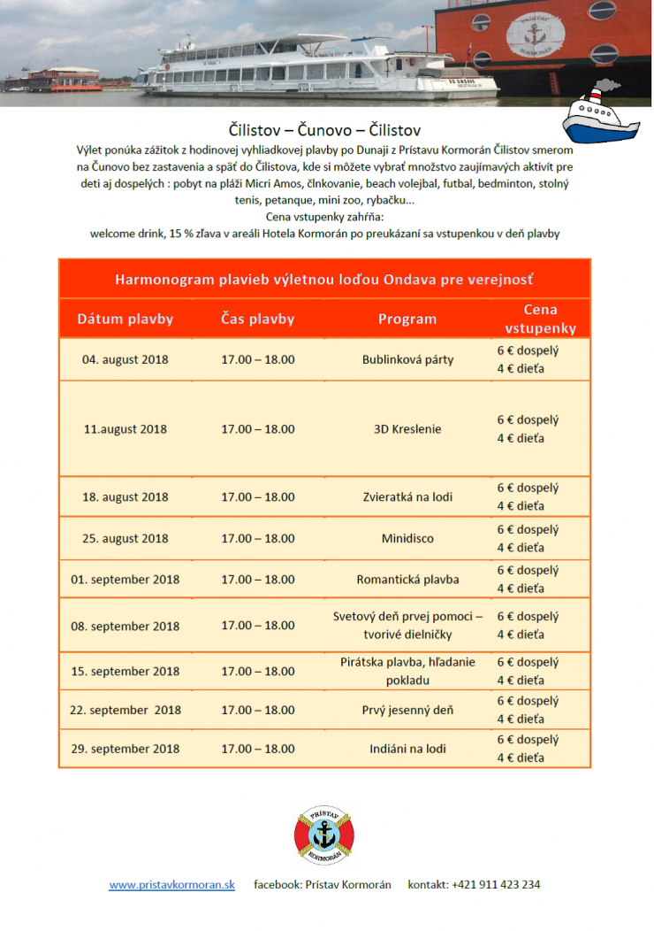 Okrem týchto plavieb bol pridaný aj mimoriadny termín plavby dňa 14.08.2018 o 10.00 hod s prestávkou v Čunove.