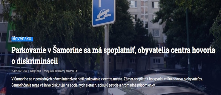 Spravodajská televízia TA3 priniesla vo svojom vysielaní reportáž o pripravovanom spoplatnení parkovania v centre nášho mesta.