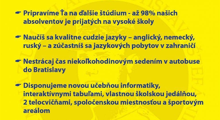 Študuj na Gymnáziu M. R. Štefánika v Šamoríne