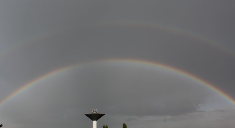 Dvojitú dúhu nad našim mestom nasnímal fotoaparátom Canon EOS 1200D.