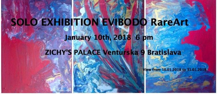 Vernisáž výstavy SOLO EviBodo RareArt sa začína o 18.00 hod. Na výstavu sú všetci srdečne pozvaní. Výstava potrvá do konca januára. Vstup na výstavu v ostatné dni je podľa otváracích hodín Zichyho Paláca.
