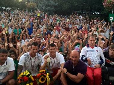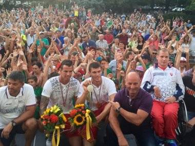 Na šamorínskych olympionikov Tibora Linku a Vincenta Farkasa čakalo dnes večer plné Hlavné námestie. Hádam aj viac ako 500 ľudí. Od rodiny, priateľov, veľkého množstva detí, až po tých starších. Všetci im pripravili famózne privítanie.