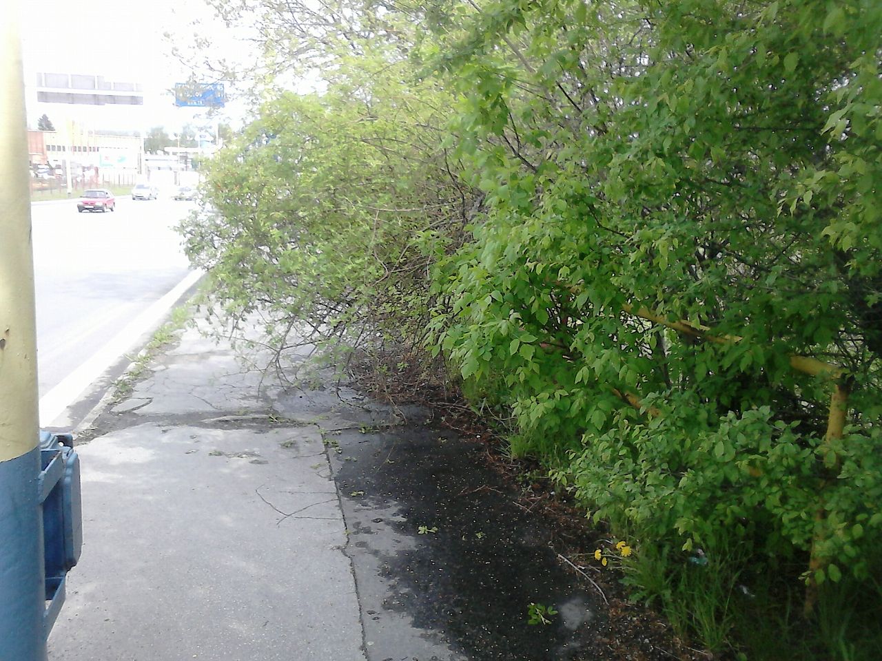 Asi 20 m za stromom zas krik do 2/3 chodníka.